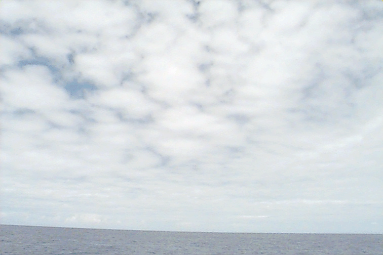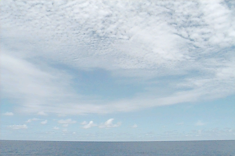 Pictures were not taken at stations 1,2,3 for safety reasons. The fantail was being worked on. Ac covers most of the sky. Some dense Ci coming from the Cb on the horizon. Several Cb's visible with beautiful anvils. Some Cu hanging around - almost no vertical development. Some lens shaped clouds at midlevels around the Cbs.