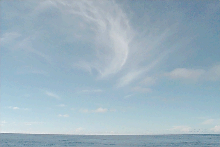 Overhead, the skies are clear, except for light Cu humilus. St visible. Ci in strands. No mid level clouds. In the distance, there are some anvils visible from isolated cells. The complete cloud is not visible over the horizon.